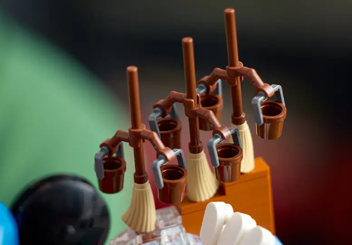 Con Topolino nei panni di apprendista stregone come protagonista, questo modello da collezione mette in mostra molti famosi personaggi Disney e include la prima minifigure LEGO di Belle di La Bella e la Bestia con la rosa incantata. Altre vignette includono Geppetto su una zattera in Pinocchio, Lilo che fa surf in Lilo & Stitch, Simba in cima alla Rupe dei Re ne Il Re Leone, Bruno alla Casa dei Madrigal in Encanto, le scope magiche che trasportano l’acqua in Fantasia e il granchio Sebastian e il pesce Flounder ne La Sirenetta.